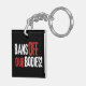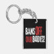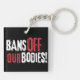 Montrez votre soutien au droit des femmes à l'autonomie corporelle avec ce porte - clé pro-choix "Bans Off Our Bodies" avec une police blanche et rouge grunge sur arrière - plan noir.