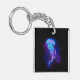 Grande méduse bleue, artistiquement dessinée, brillante, brillante, avec de longues tentacules sur arrière - plan noir avec bioluminescence violette. Méduse brillante.