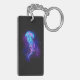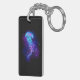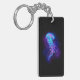 Grande méduse bleue, artistiquement dessinée, brillante, brillante, avec de longues tentacules sur arrière - plan noir avec bioluminescence violette. Méduse brillante.