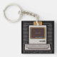 Un vieil ordinateur avec le jeu sur l'écran et les mots vieux règles de l'école. Cette conception semble vraiment efficace sur ces Porte - clés