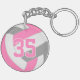 Ce porte - clé à thème de volley-ball mignon dispose d'un volley-ball rose, gris et blanc réaliste sur lequel vous pouvez customiser le nom du joueur, le numéro de maillot et la position du tribunal, ainsi que le nom de l'école ou du club et le nom de la mascotte dans une police de style lettre variée - par katz_d_zynes