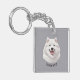 Ce porte - clé présente une image AI d'un beau blanc samoyé sur arrière - plan gris. Personnalisez-le avec le nom ou la photo de votre animal de compagnie.