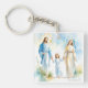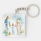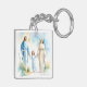 Un portrait délicat de la Sainte Famille, avec saint Marie, l'Enfant Jésus et saint Joseph. Unis par la main, ils marchent ensemble vers nous pour nous prendre par la main et marcher avec eux dans la Paix, l'Espoir et la Foi. Graphique informatique avec peinture, aquarelle effet.