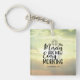 Un porte - clé de citation inspirant représente un beau lever de soleil un matin brumeux. Il comporte une partie de la Bible Verse Lamentations 3:23, "Sa miséricorde est nouvelle tous les matins."
