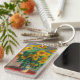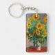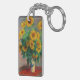 Porte - clé représentant la peinture à l’huile de Claude Monet Bouquet of Sunflowers (1881). Beaux tournesols dans un vase bleu au-dessus d'une table rouge. Un grand cadeau pour les amateurs d'impressionnisme et d'art français.