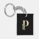 Elégant porte - clé noir avec un monogramme botanique d'or avec majuscule P lettre au centre.