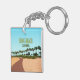 Affichez les palmiers verts et le sable doré du Shoreline Aquatic Park à Long Beach, Californie, États-Unis sur un porte - clé comme souvenir de l'un des plus grands sites d'Amérique!