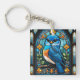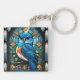 Porte-clefs Majestic Bluebird perchée sur une fenêtre en verre