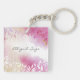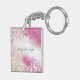 Un porte - clé inspiré et personnalisé représente un beau design de feuilles avec un arrière - plan vert et rose. Il contient une partie de la Bible Verse Matthieu 28:20, dans les paroles de Jésus, "Je suis avec vous toujours." Personnalisez le dos avec un nom ou les détails de votre choix.*
