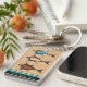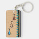 Ce porte-clés recto-verso présente 2 variantes du design IconDoIt's cool Modern Retro, chacune avec 3 poissons de dessin animé, stylée pour refléter l'influence du design atomique et aéronautique, nageant au-dessus de la suggestion d'ondes bleues au-dessus de bandes noires sur une surface en cerisier naturel + 2 champs de texte personnalisés pour le nom ou la légende du destinataire. Inspiré par les dessinateurs et graphistes post-2ÈME GUERRE MONDIALE de l'"Âge Atomique".