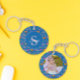 Porte-clefs Monogramme aquarelle Fleur bleue et abeille