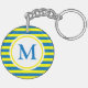 Porte-clefs Monogramme de rayures jaune et bleu vif
