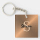 Mens Elegant Bronze Gold Script Monogramme Porte - clé fait une excellente idée cadeau pour un homme à toute occasion. Le Porte - clé est conçu avec un arrière - plan métallique en bronze masculin et un monogramme marron clair sur le centre et un script de calligraphie indiquant un nom personnalisé.