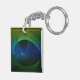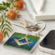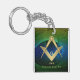 Carré or élégant et boussole Symbole maçonnique porte - clé personnalisé avec un arrière - plan fractal moderne.