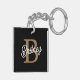 Porte-clefs Monogramme moderne élégant Nom Black Gold Script