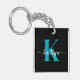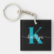 Ce porte - clé noir moderne avec votre prénom dans une police de script tendance en blanc et votre première initiale dans une police de casquette moderne en turquoise est parfait pour vos clés. C'est design, tendance et pourtant très classique.