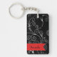 Porte-clefs Motif de perles, noir et blanc, votre nom