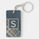 Porte-clefs Motif Plaid Turquoise en bande bleu foncé personna