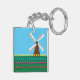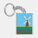 Un moulin à vent au milieu de fleurs de tulipe jaune bleu et rose. Cette conception semble vraiment efficace sur ces Porte - clés