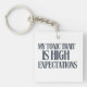 A bold, minimalist text design featuring the humorous and self-aware phrase, "MY TOXIC TRAIT IS HIGH EXPECTATIONS." The text is set in a strong, serious serif font, creating a contrast with the lighthearted, trending social media concept. This design appeals to those who relate to having demanding standards for themselves and others.