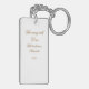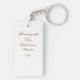 The reverse side offers a minimalist contrast: a clean white background featuring an elegant script in a refined gold-toned hue. The text, name, and year can be easily customized, making this keyring a truly unique and personalized gift.