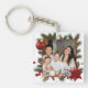 New year Frame with Red Star Snowflakes Photo Family Ceramic Keychain