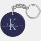 Ce porte - clé moderne avec votre prénom dans une police de script tendance en blanc et votre première initiale dans une police de casquette moderne en bleu clair sur bleu marine est parfait pour vos clés.