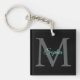 Porte-clefs Nom du script turquoise, Monogramme gris grand sur
