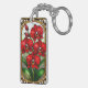 Porte-clefs Orchidées rouges vibrantes dans cadre or ornementa
