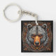 Illustration très stylisée de la tête d'un ours, représentée avec des détails complexes et des couleurs vives. La fourrure de l'ours est principalement grise avec des touches d'orange autour de son museau, ce qui lui donne une apparence saisissante. Ses yeux sont intenses et captivants, contribuant à l'expression puissante de l'animal. L'ours est encerclé par une bordure décorative ornée, qui ajoute une touche artistique et une richesse à la composition. Le fond est noir, ce qui renforce l'ensemble du drame et de la profondeur de l'œuvre, faisant ressortir l'ours de manière proéminente. La combinaison des couleurs et des dessins complexes crée une œuvre d'art visuellement convaincante qui transmet la force et la majesté.