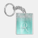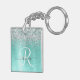 Personnalisez facilement ce design porte - clé chic et branché avec une jolie parties scintillant brillante en argent sur un arrière - plan métallique brossé turquoise.