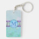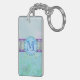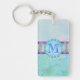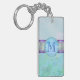 Monogramme bleu gras avec bande décorative sur un arrière - plan floral bleu pastel, rose, violet et vert. Un bel accent décoratif pour la maison. Un cadeau parfait pour toute occasion.