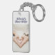 Porte - clé avec World's Best épouse en texte gris 3D. Customisez-le avec votre propre photo. Disponible en plusieurs styles.