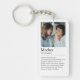 Il n'y a personne tout à fait comme une Mère ! Faites savoir à votre maman ce qu'elle représente pour vous avec ce porte-clés photo souvenir. Le design comporte une image de votre choix, le nom de votre mère et la définition de ce qu'est une maman pour vous. Cadeau parfait pour les anniversaires, Noël ou la Fête des Mères.