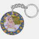 Porte-clefs Photo jaune Fleurs motif Monogramme Nom bleu
