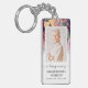 Porte-clés du mémorial de photos florales pour célébrer la vie de votre être cher. Le design modèle peut facilement être personnalisé avec votre propre photo et texte pour créer un hommage spécial à votre être aimé ou dans le cadre de leurs funérailles, mémorial, ou célébration de la vie.