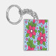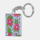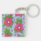 Porte-clefs Pink Florals with Bold Petals and Green Leaves