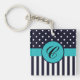 Ce design comprend un petit pois de pois sur le dessus et un motif rayé sur le fond. La porte - clé est ensuite accentuée par une bordure turquoise avec un logo monogramme au centre. Vous pouvez personnaliser ce produit avec votre propre initiale avec l'outil facile à utiliser.