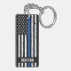 Porte - clé de Ligne Bleue Mince - Drapeau américain dans les couleurs du drapeau de la Police, design en détresse. Personnalisez avec le nom des policiers, le nom de famille ou le département. Ce porte - clé de police personnalisé est parfait pour les services de police et d'application de la loi, les familles et tous ceux qui les soutiennent. DROIT D'AUTEUR © 2020 Judy Burrows, Black Dog Art - Tous droits réservés. Officier de police personnalisé Porte - clé mince ligne bleue