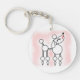Porte - clé acrylique avec illustration de caniche snooty. Un poodle stylisé avec des poms de pom et un pout sur un arrière - plan rose poudreux.