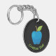 Pomme bleue avec icône feuille. Couleur arrière - plan personnalisée. Texte personnalisé des deux côtés.