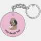 Porte - clé acrylique avec illustration d'un mignon petit chiot brun avec un os ; illustré par Radka Kavalcova / MaxiHarmony