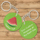 Icône tranche de pastèque rouge mûre. Couleur arrière - plan personnalisée. Texte personnalisé des deux côtés.
