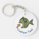 Poisson en colère qui agresse un petit dessin animé. Couleur arrière - plan personnalisée. Texte personnalisé des deux côtés.