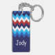 Un porte - clé rectangulaire acrylique monogrammé avec un design motif coloré et tendance de chevrons rouges, blancs et bleus. Créez le cadeau customisé parfait en cliquant sur le bouton "personnalisé" pour ajouter un nom ou un message personnalisé dans le champ de modèle fourni. Sélectionnez le lien "cliquer pour customiser plus loin" pour modifier la police, la taille du texte et plus encore.