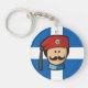 Chef du dessin animé grec Evzone (tsolias), portant du fez rouge. Ancien arrière - plan du drapeau grec. Retourner le texte personnalisé.