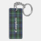 Porte - clé élégant fait dans le motif écossais de plaid de tartan de Campbell de clan bleu, vert, et blanc. Le texte blanc audacieux de style de Vieux Monde, sur l'avant et le dos, est prêt à personnaliser pour vous-même ou comme grande idée de cadeau.