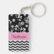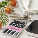 Le porte - clé moderne et à la mode floral et de chevron de motif comporte des rayures blanches de chevron et un motif floral blanc sur texte initial, nommé ou autre d'arrière - plan noir et d'un cadre d'accent de rose en pastel pour un votre sur l'avant et le dos. Montrez votre personnalité avec ces amusement et porte - clé à la mode. Fait un grand cadeau pour toutes les occasions. Cliquez sur la "personnaliser il !" boutonnez pour changer la taille de la police, la couleur de police, le style de police et les plus !