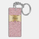 Porte - clé de monogramme avec le joli emblème imprimé de monogramme d'or que vous pouvez personnaliser avec n'importe quel nom, les initiales, ou le bijou de message et rose de diamant bling, avec l'arrière - plan rose imprimé de parties scintillantes vous pouvez employer comme cadeau ou cadeau. Conçu comme porte - clés pour des femmes ou porte - clés pour des filles, dans une conception acrylique bilatérale d'amusement qui vous laisse porter vos clés dans le style.