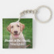Gardez votre membre de la famille furry près de votre coeur avec ce beau porte - clé photo keepsaké. Conçu pour honorer la mémoire d'un chien, d'un chat ou d'un autre animal de compagnie bien-aimé. Dispose d'un design photo recto verso avec personnage blanc "Forever in Our Hearts" superposition avec le nom que vous pouvez personnaliser.